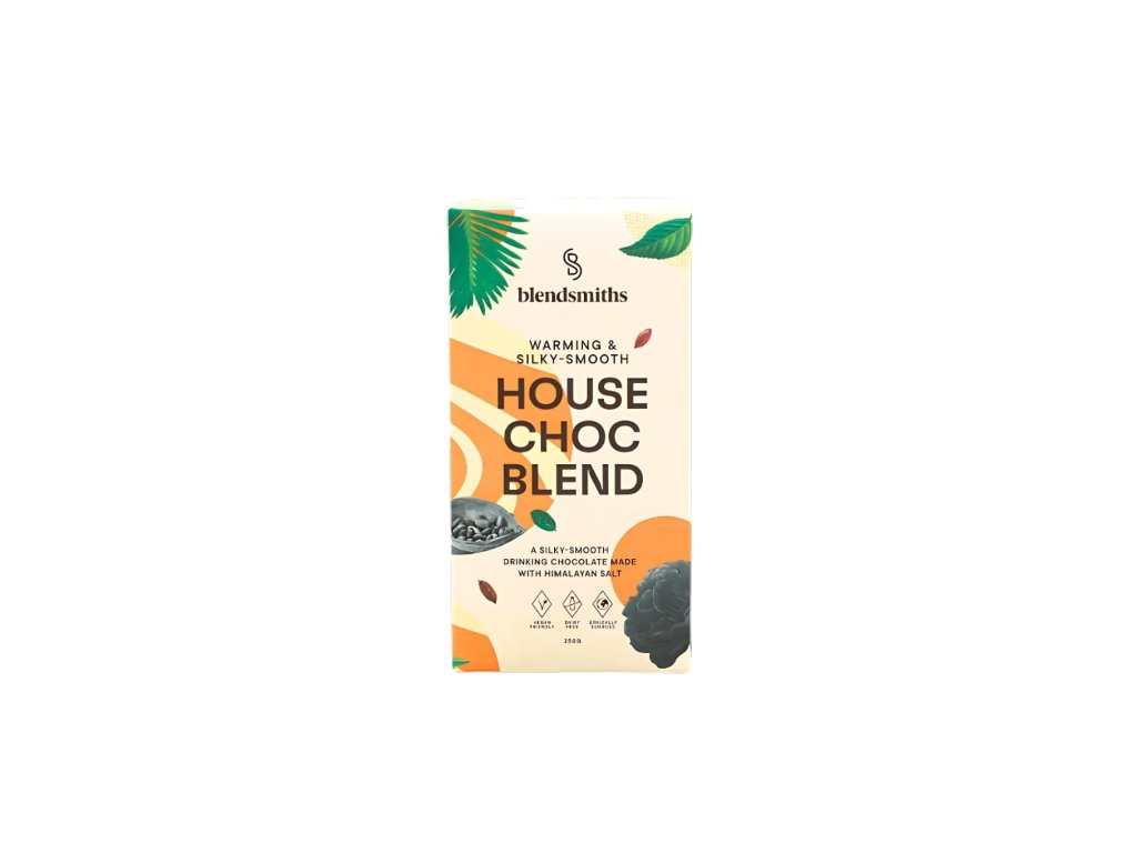 House Choc Blend od Blendsmiths je hřejivá a sametově hebká směs připravená ke smíchání s mlékem dle vašeho výběru. Senzační čokoláda na každodenní pití, dokonale namíchaná se solí, zahalená přírodní sladkostí. Hodťe starosti za hlavu, nohy na stůl a užijte si svoji chvilku s Blendsmiths. Praktické 250g balení si můžete vzít kamkoliv s sebou.