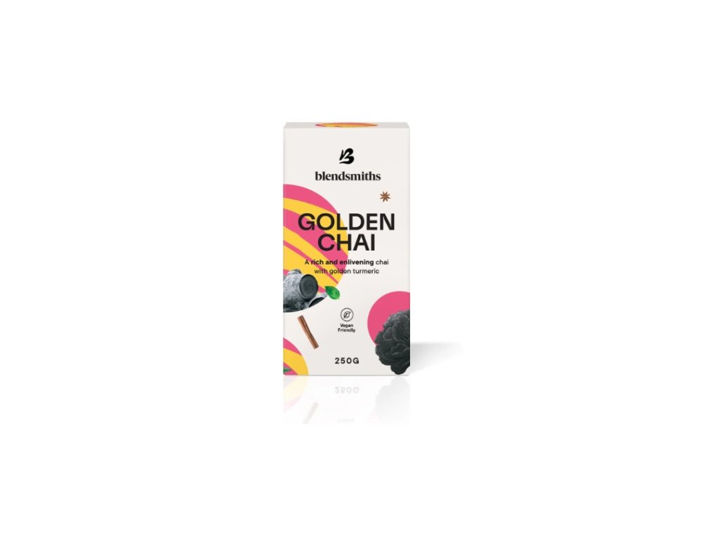 Golden Chai Blend od Blendsmiths je hřejivá a povzbuzující směs připravená ke smíchání s mlékem dle vašeho výběru. Neuvěřitelně lahodná směs kurkumy, skořice a několika druhů aromatického koření vás odzbrojí svou chutí. Hodťe starosti za hlavu, nohy na stůl a užijte si svoji chvilku s Blendsmiths. Praktické 250g balení si můžete vzít kamkoliv s sebou.