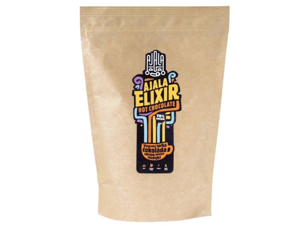 Horká čokoláda, kterou zbožňovali už staří Mayové. Ajala Elixír je šetrně zpracovaná 70% čistá čokoláda mletá na jemný prášek, ideální pro přípravu tradičního horkého kakaového nápoje s bohatou, plnou chutí.